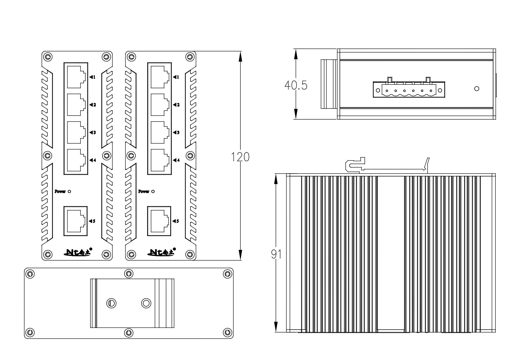 工業級(NT品牌)百兆非網管5電,導軌式-DC12~52V供電-寬溫(-40℃-85℃)。默認不含AC電源適配器。 |