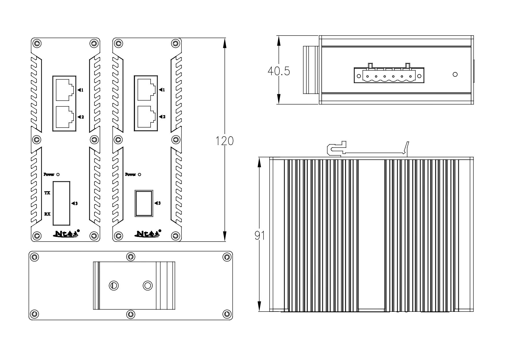 外殼:IP40防護(hù)等級,金屬外殼 散熱方式:自然冷卻,無風(fēng)扇 重量 :0.36Kg 尺寸 :120X91x40.5mm (長 x 寬 x 高) |
