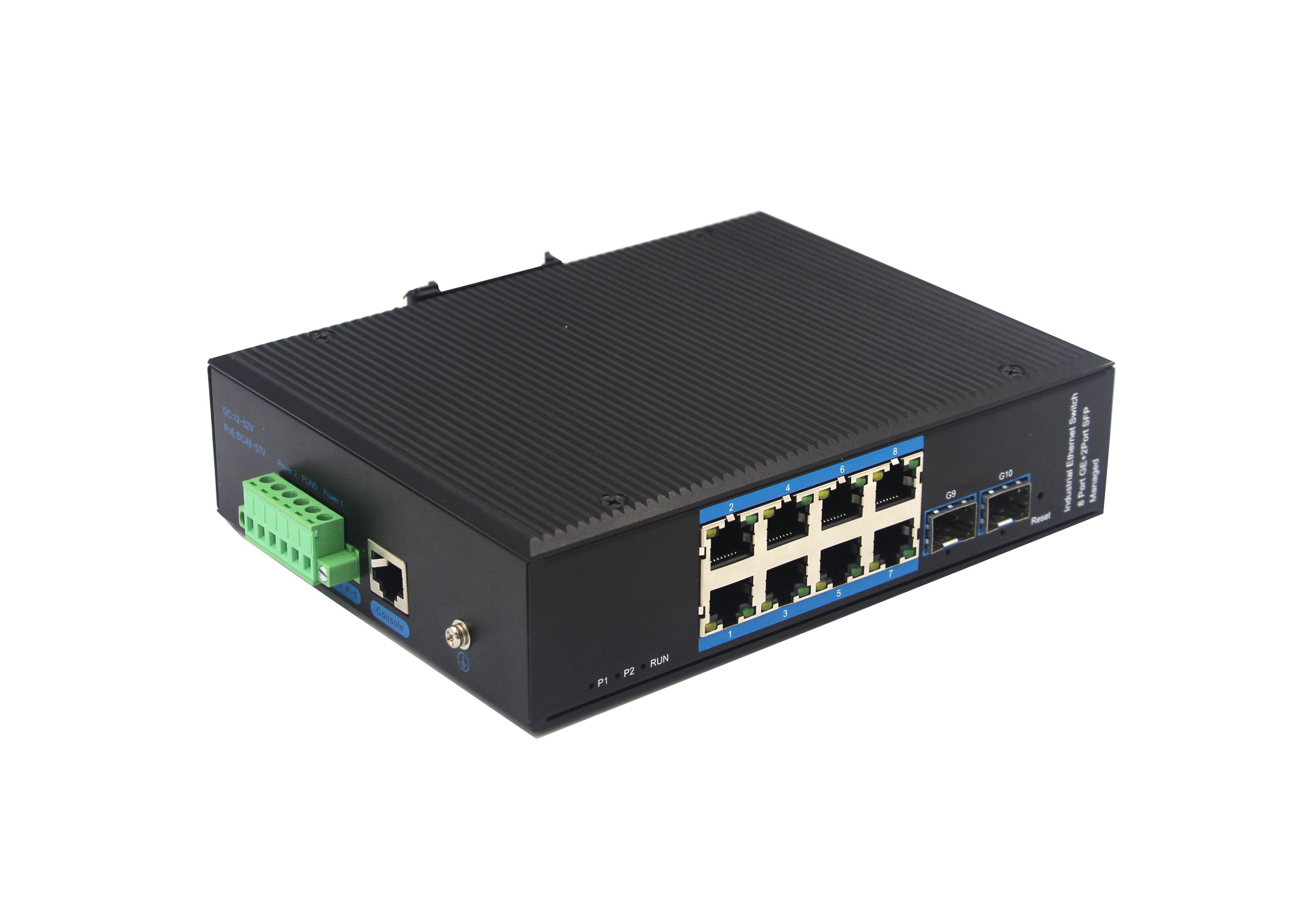 2個千兆光+8個千兆自適應電口、SFP接口、DC12-52V供電