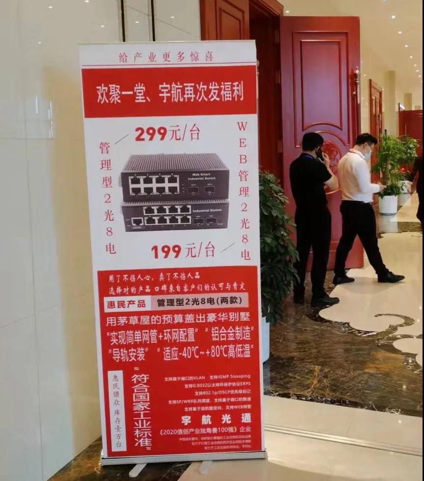 在本次會議中,宇航工業(yè)交換機再次發(fā)福利,管理型2光8電僅【299元/臺】,WEB管理型2光8電僅【199元/臺】。用茅草屋的預(yù)算蓋出豪華別墅的效果,鋁合金制造、導(dǎo)軌式安裝,寬溫-40℃~+80℃,可實現(xiàn)簡單網(wǎng)管+環(huán)網(wǎng)配置。一樣的好品質(zhì),不一樣的價格,只為回饋廣大用戶對宇航的支持~