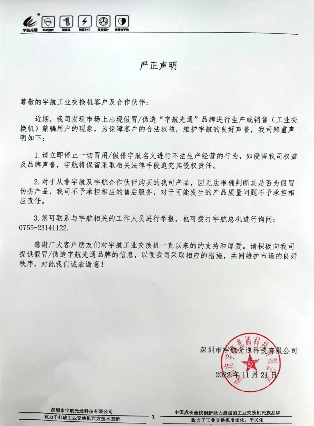 上一篇:宇航工業交換機發布關于宇航光通品牌公告!