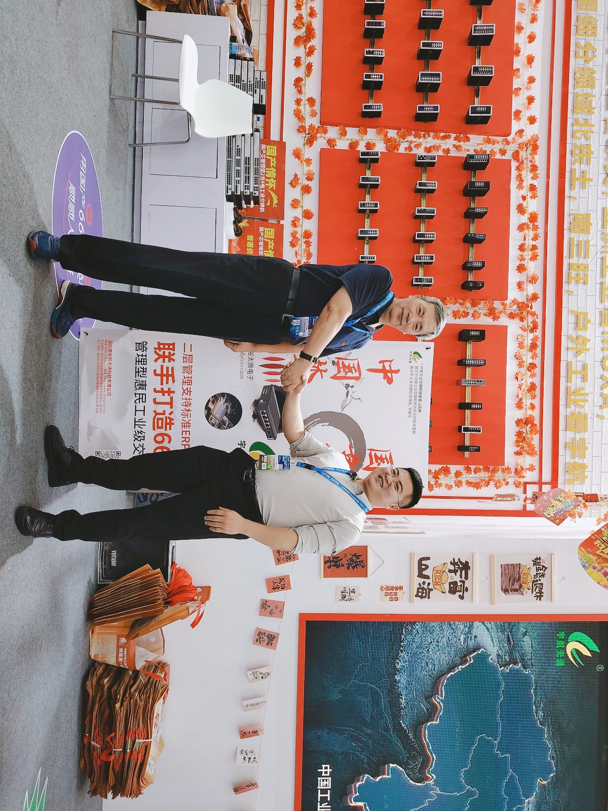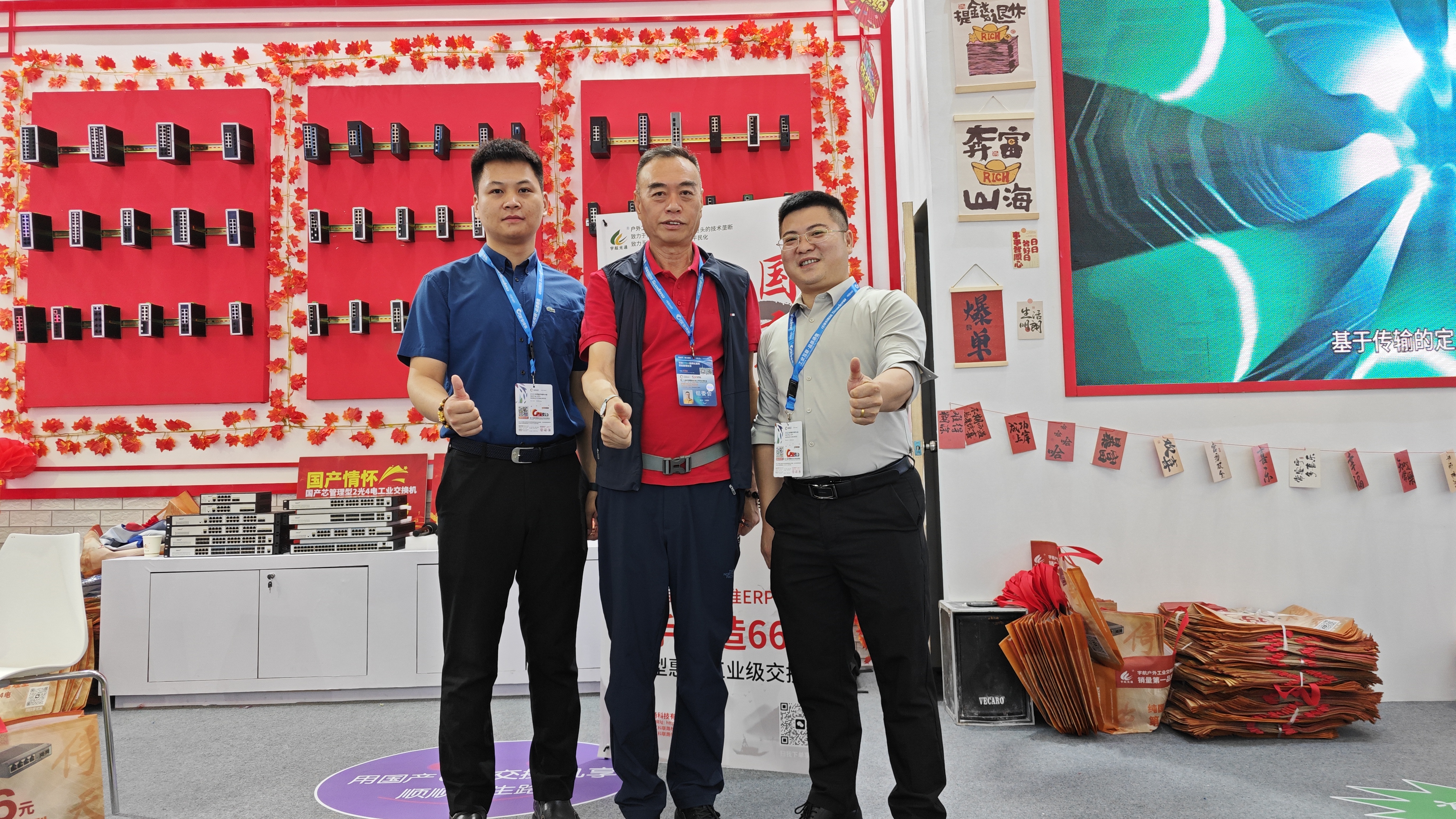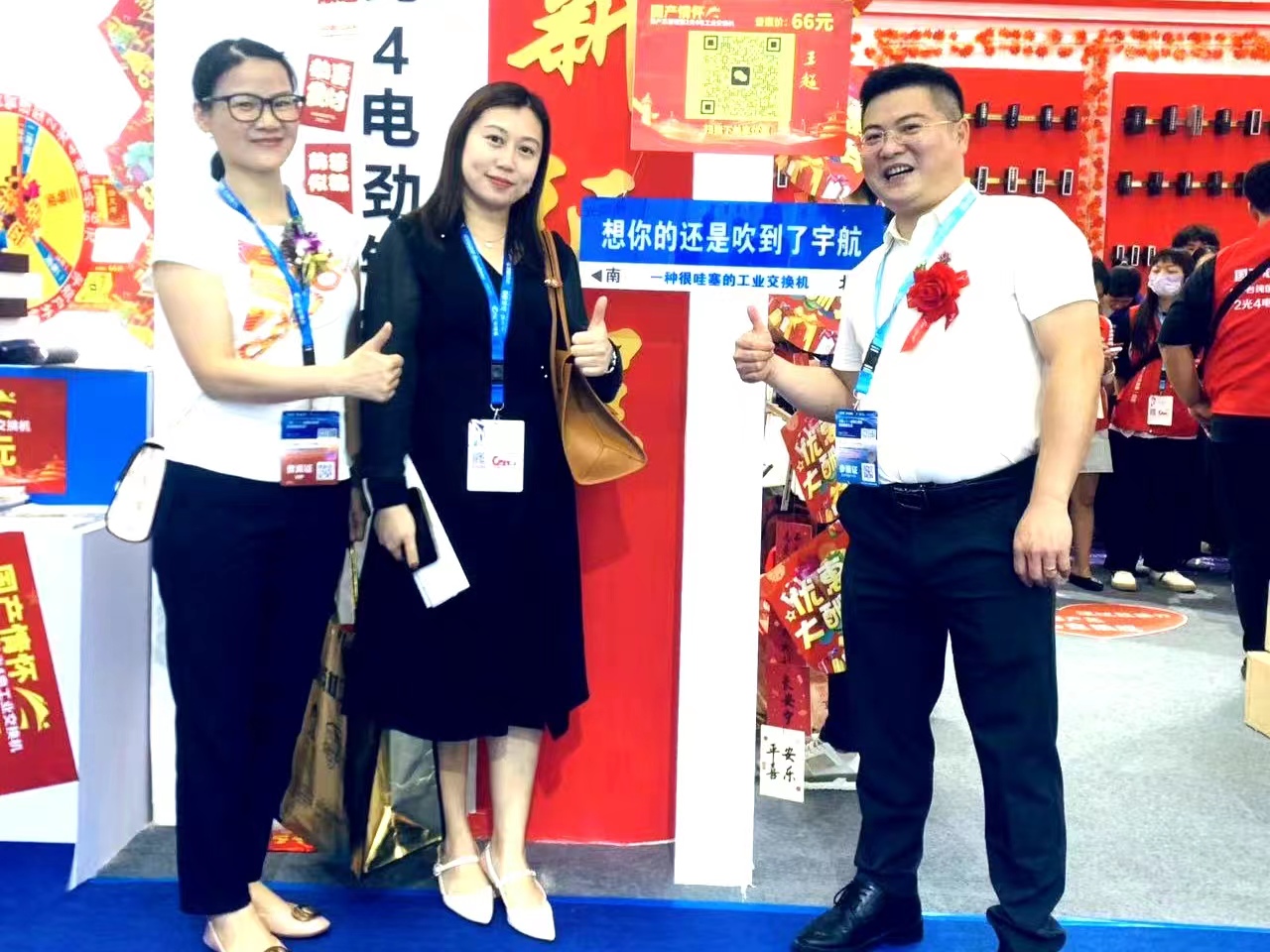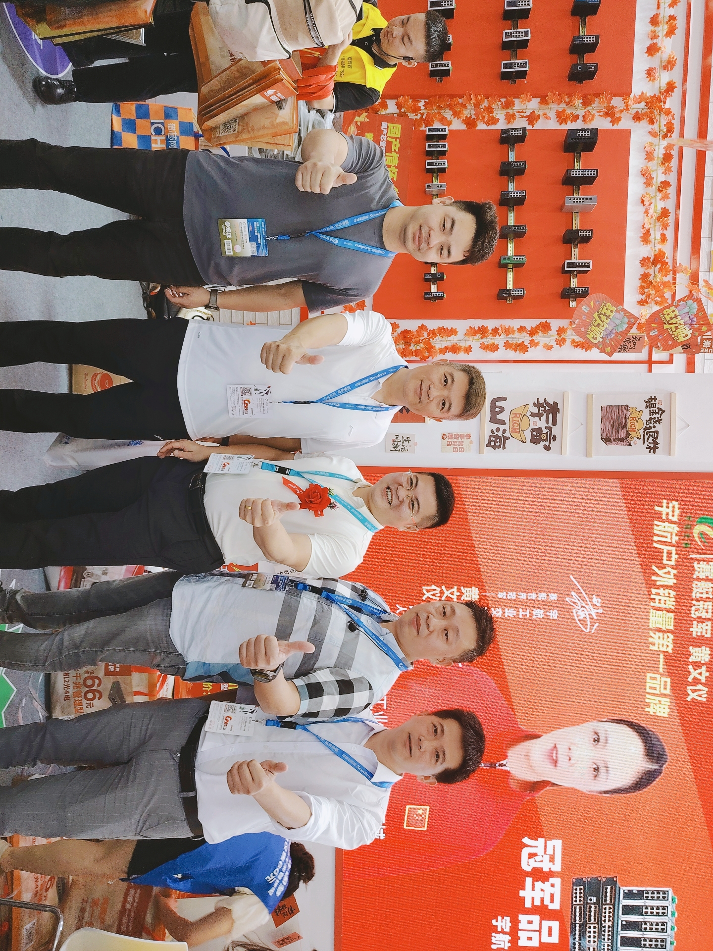 宇航工業(yè)交換機(jī)劉總受邀參加CPSE安博會(huì)開幕式(第二排左二) 宇航是戶外工業(yè)銷量第一品牌,本次展會(huì)宇航順應(yīng)潮流,以中國(guó)紅為背景,結(jié)合當(dāng)前“00后”慣用的網(wǎng)絡(luò)流行語來打造展館,兩種元素相互碰撞,獨(dú)具匠心,整個(gè)展館充滿活力和年輕氣息,吸引了眾多嘉賓駐足觀看,前來打卡留念的觀眾絡(luò)繹不絕。