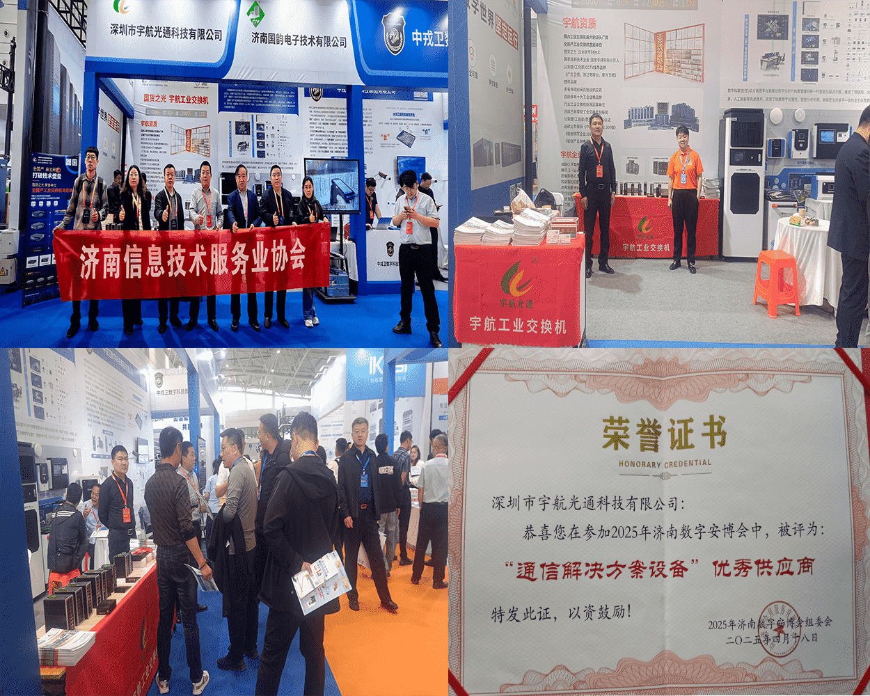 此次系列展會中,宇航工業交換機展示了最新一代國產化工業通信解決方案,吸引眾多行業用戶駐足交流。各地參展觀眾對宇航自主研發的全系列工業級交換設備給予高度評價,尤其對宇航工業交換機在惡劣環境下的穩定性能和信創領域的技術突破表示贊賞。在濟南數字安防產業博覽會上,宇航憑借其自主創新的國產通信技術體系,榮膺大會"通信解決方案設備優秀供應商"稱號。