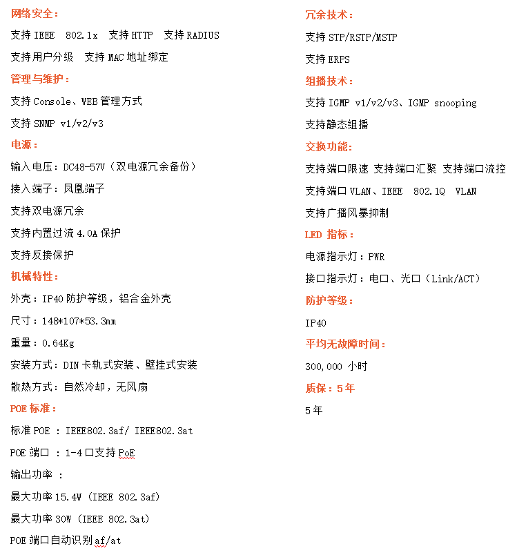 ●告警功能:支持電源,端口,異常狀態(tài)繼電器輸出