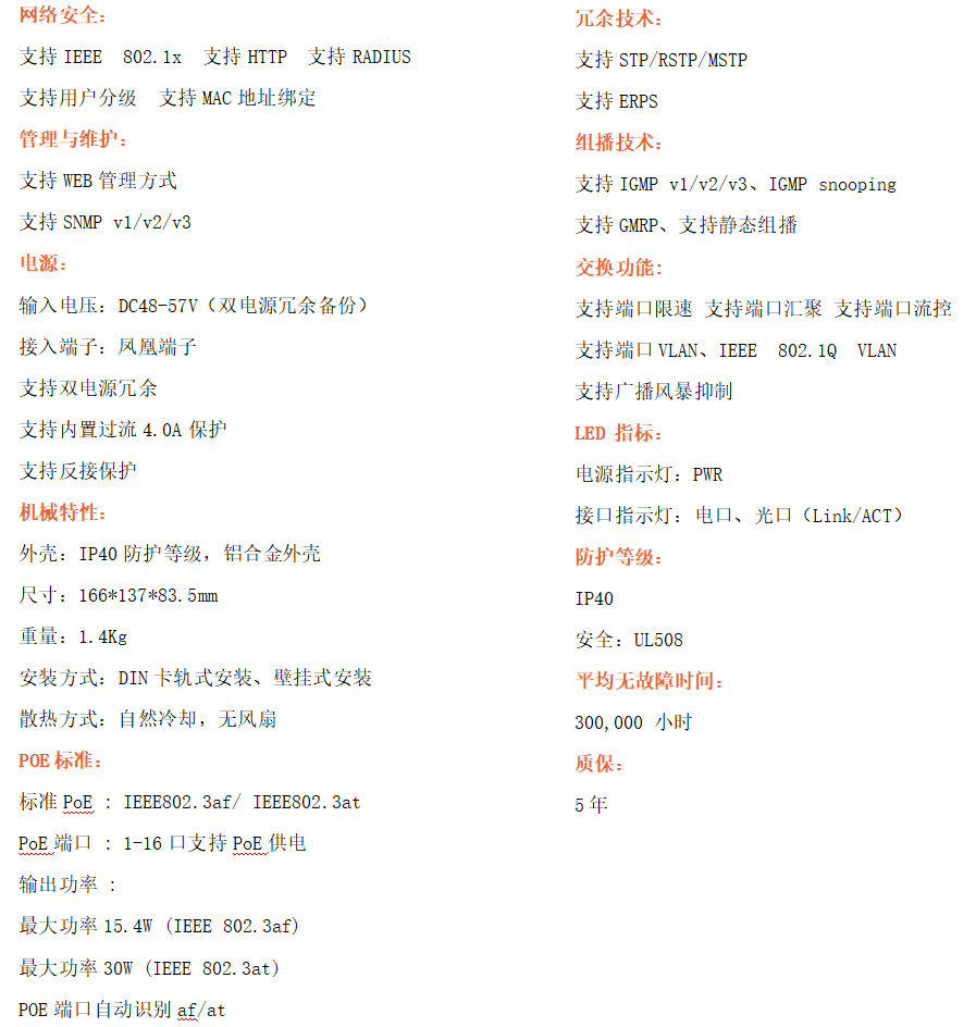●告警功能:支持電源,端口,異常狀態繼電器輸出IP40防護等級