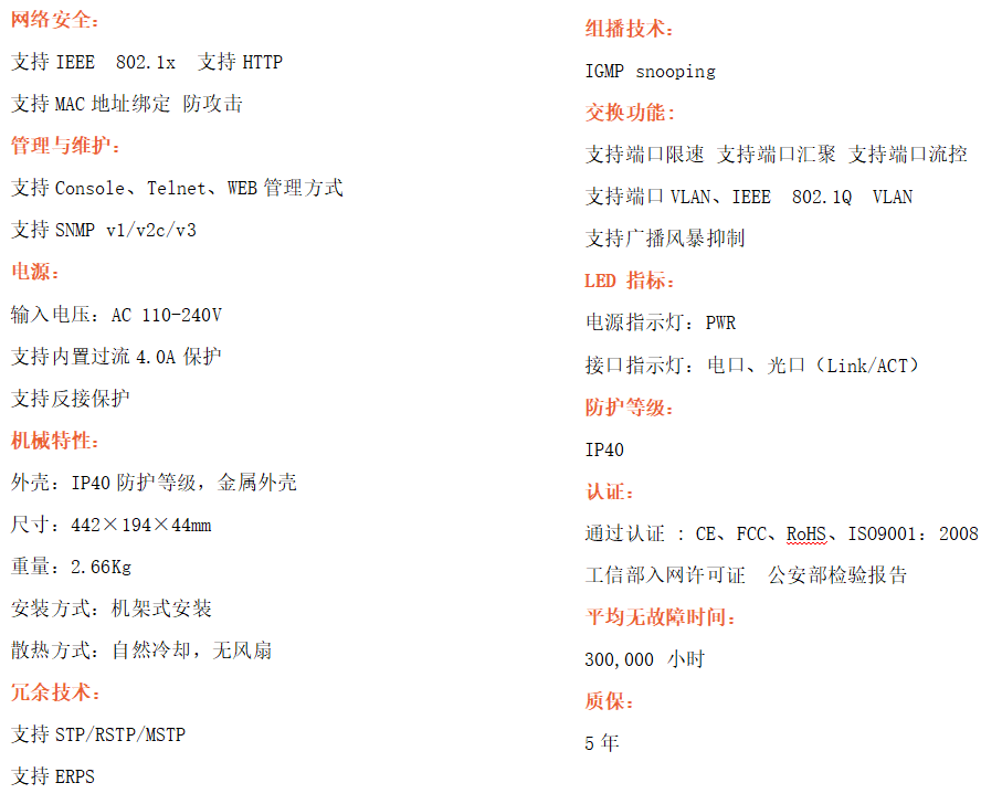 ●管理功能:支持WEB、CLI、SNMP管理方式
