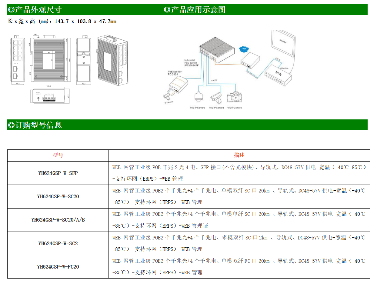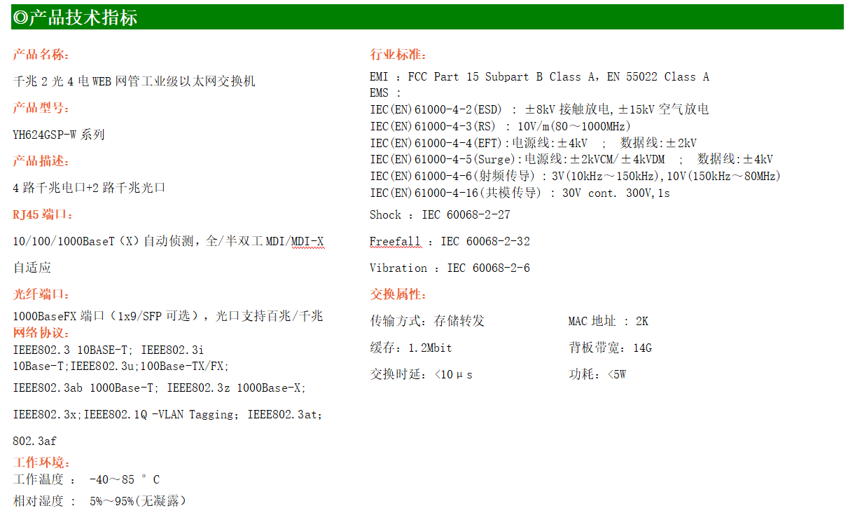 YH600-24GSP-W系列WEB管理工業級以太網PoE交換機,產品符合FCC、CE、ROHS標準,支持工業現場所需的以太網二層協議,保證通信網絡的穩定性。該系列交換機采用低功耗、無風扇設計,確保無噪聲干擾,同時支持-40~85℃工作溫度和良好的EMC電磁兼容性能,保證在惡劣的工業環境中保持穩定的工作,為工廠自動化,智能交通,視頻監控等工業應用領域組建快速穩定的網絡終端接入網絡提供安全可靠的解決方案。