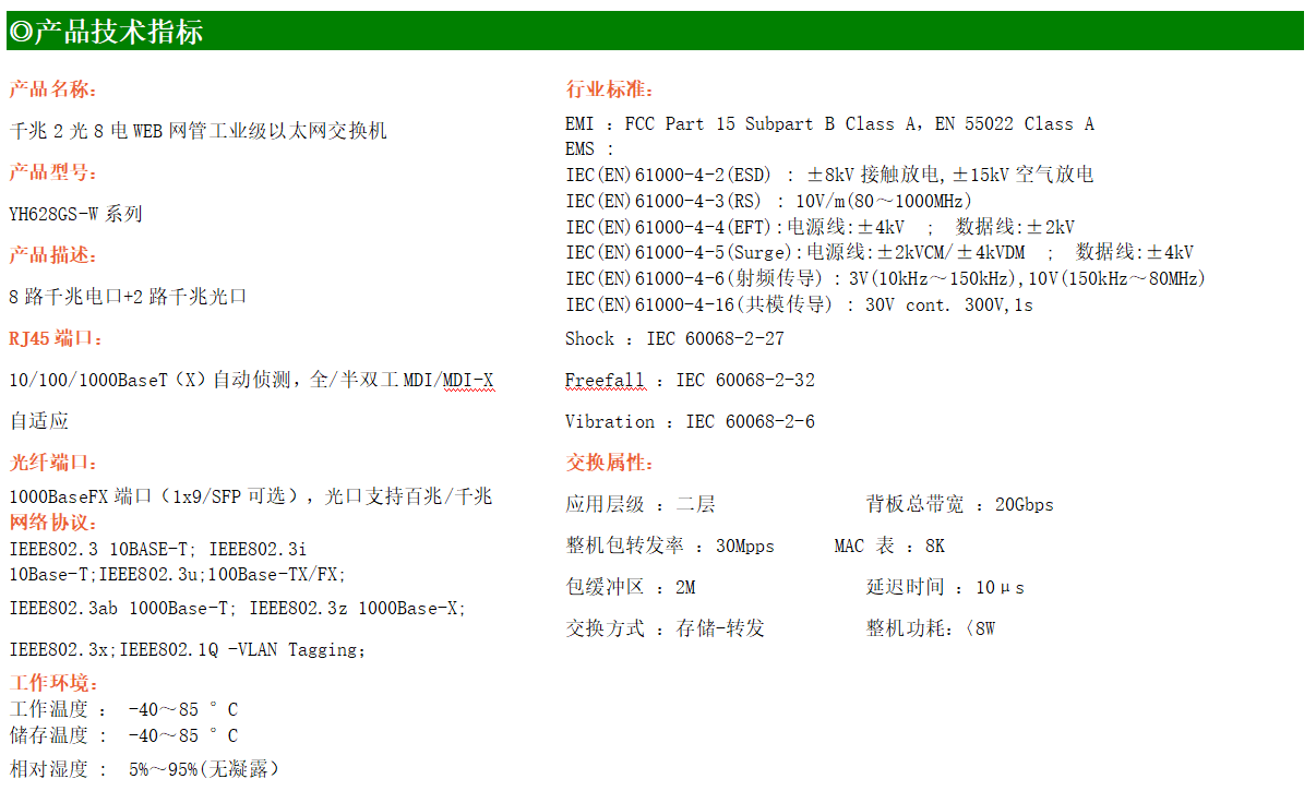 YH600-28GS-W系列WEB網管工業級以太網交換機,產品符合FCC、CE、ROHS標準,支持工業現場所需的以太網二層協議,保證通信網絡的穩定性。該系列交換機采用低功耗、無風扇設計,確保無噪聲干擾,同時支持-40~85℃工作溫度和良好的EMC電磁兼容性能,保證在惡劣的工業環境中保持穩定的工作,為工廠自動化,智能交通,視頻監控等工業應用領域組建快速穩定的網絡終端接入網絡提供安全可靠的解決方案。