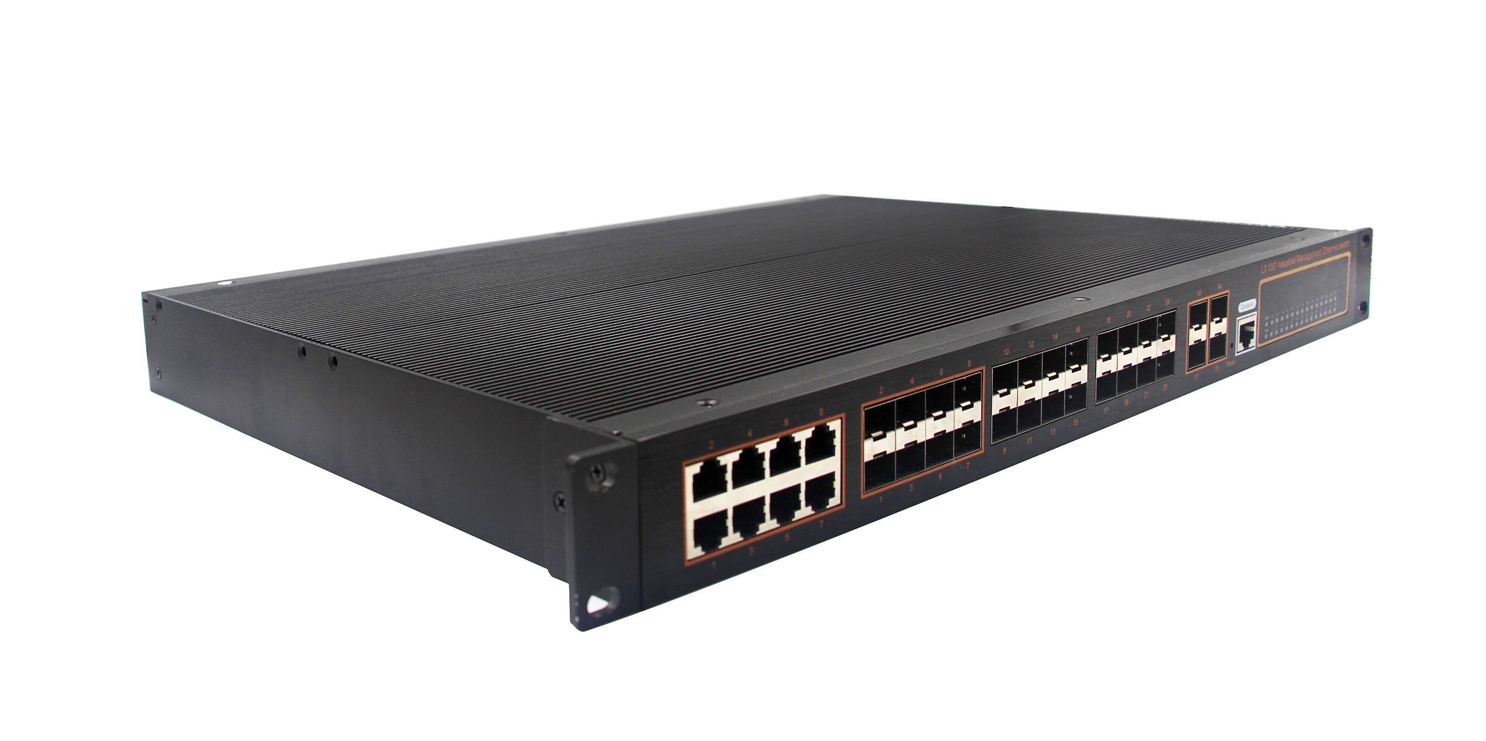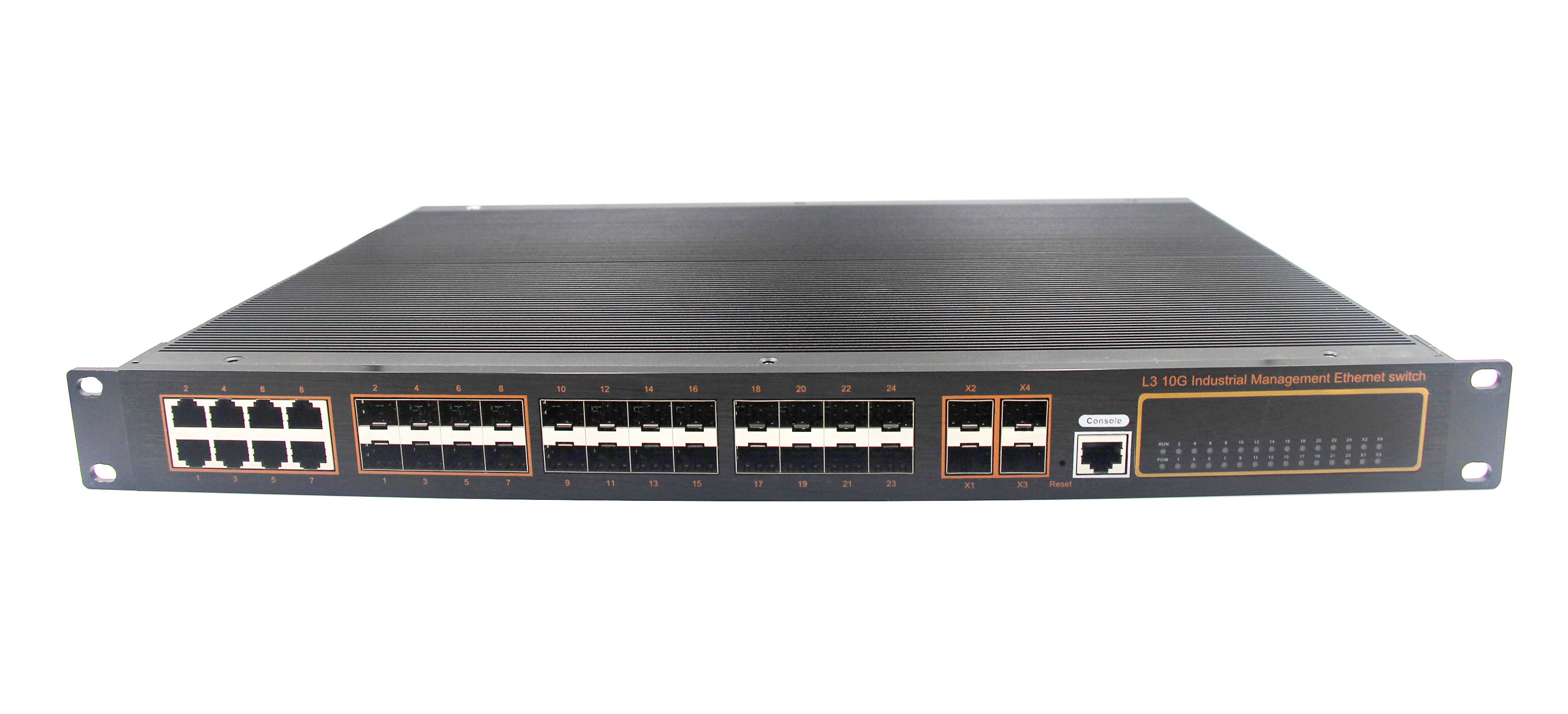 24千兆光+8千兆電+4個萬兆SFP+ 萬兆網(wǎng)管型機架式工業(yè)匯聚交換機