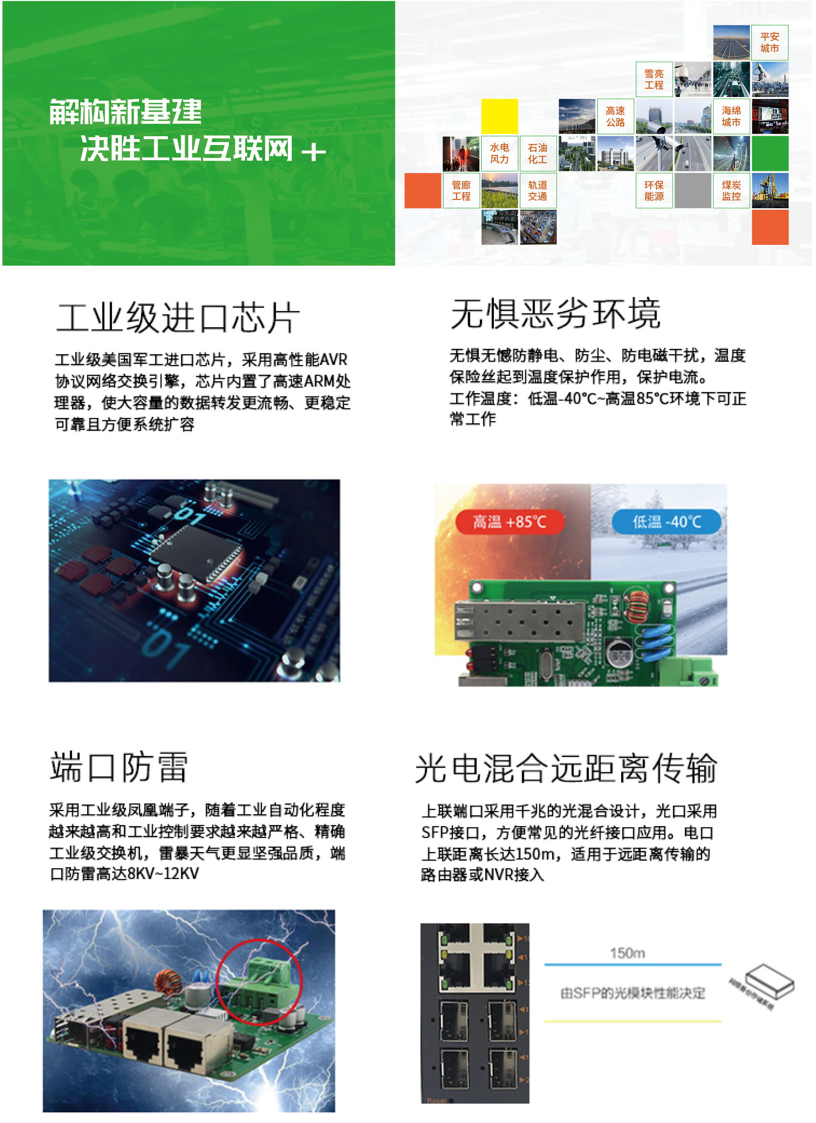 YH600L-216GFS-SFP系列網管型工業以太網交換機,產品符合FCC、CE、ROHS標準。支持2個千兆光口和16個百兆電口,支持工業現場所需的以太網二層協議,保證通信網絡的穩定性;該系列交換機采用低功耗、無風扇設計,確保無噪聲干擾,同時支持-40~75℃工作溫度和良好的EMC電磁兼容性能,保證在惡劣的工業環境中保持穩定的工作,為工廠自動化,智能交通,視頻監控等工業應用領域組建快速穩定的網絡終端接入網絡提供安全可靠的解決方案。