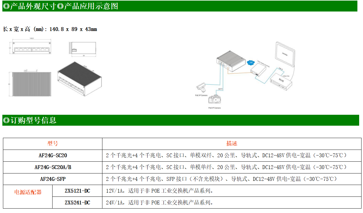 4路千兆電口+2路千兆FX光口工業(yè)級(jí)以太網(wǎng)交換機(jī),支持4個(gè)100Base-T/1000Base-TX電口和2個(gè)1000Base-X光口。產(chǎn)品符合FCC、CE、ROHS標(biāo)準(zhǔn)。AF24G系列交換機(jī)具有-30℃~75℃的工作溫度,具有超強(qiáng)的堅(jiān)固度能適應(yīng)各種嚴(yán)苛環(huán)境,也可以非常方便的安置在空間緊湊的控制箱中。導(dǎo)軌的安裝特性、寬溫操作及擁有IP40防護(hù)等級(jí)的外殼及LED指示燈,使AF24G成為一個(gè)即插即用的工業(yè)級(jí)設(shè)備,為用戶的以太網(wǎng)設(shè)備聯(lián)網(wǎng)提供可靠、便捷的解決方案。