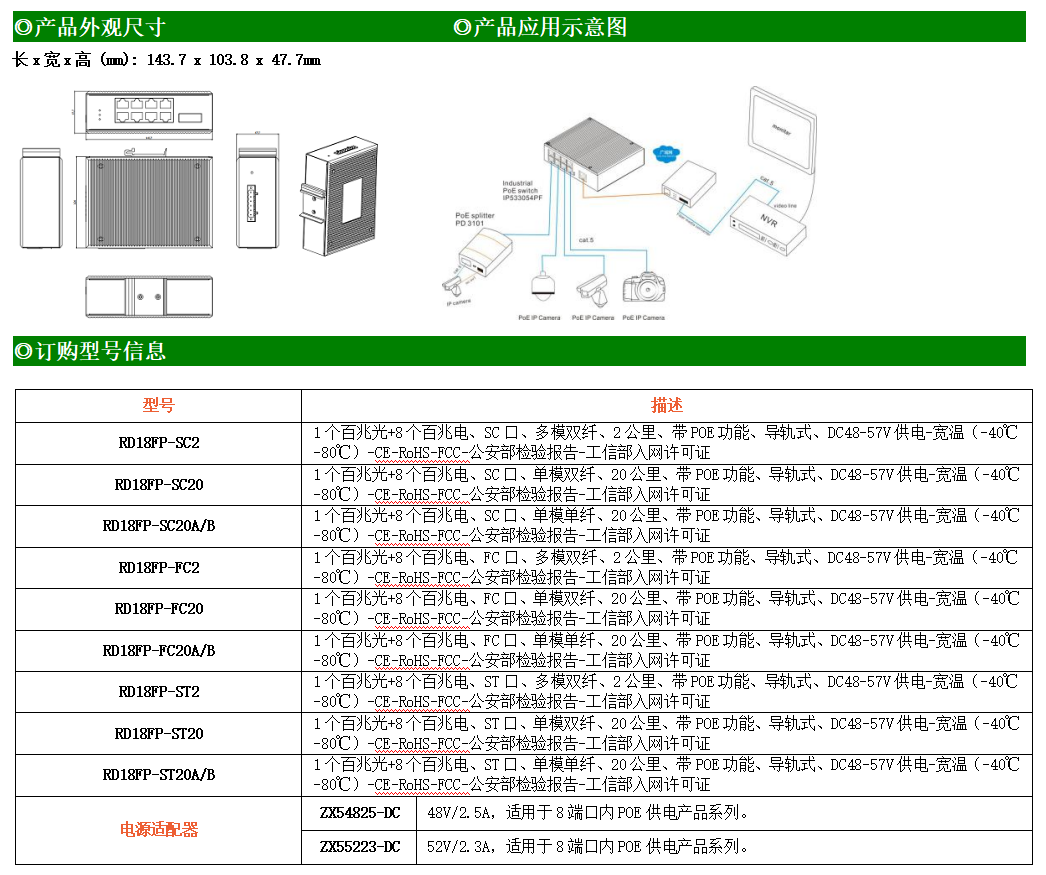 4路百兆電口+2路百兆FX光口工業級以太網交換機,支持4個10Base-T/100Base-TX電口和2個100Base-X光口。產品符合FCC、CE、ROHS標準。AF24F系列交換機具有-30℃~75℃的工作溫度,具有超強的堅固度能適應各種嚴苛環境,也可以非常方便的安置在空間緊湊的控制箱中。導軌的安裝特性、寬溫操作及擁有IP40防護等級的外殼及LED指示燈,使AF24F成為一個即插即用的工業級設備,為用戶的以太網設備聯網提供可靠、便捷的解決方案。