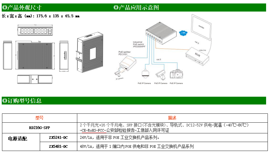 ZX216GFS系列網(wǎng)管型工業(yè)以太網(wǎng)交換機,產(chǎn)品符合FCC、CE、ROHS標(biāo)準(zhǔn)。支持2個千兆光口和16個百兆電口,支持工業(yè)現(xiàn)場所需的以太網(wǎng)二層協(xié)議,保證通信網(wǎng)絡(luò)的穩(wěn)定性;該系列交換機采用低功耗、無風(fēng)扇設(shè)計,確保無噪聲干擾,同時支持-40~80℃工作溫度和良好的EMC電磁兼容性能,保證在惡劣的工業(yè)環(huán)境中保持穩(wěn)定的工作,為工廠自動化,智能交通,視頻監(jiān)控等工業(yè)應(yīng)用領(lǐng)域組建快速穩(wěn)定的網(wǎng)絡(luò)終端接入網(wǎng)絡(luò)提供安全可靠的解決方案。