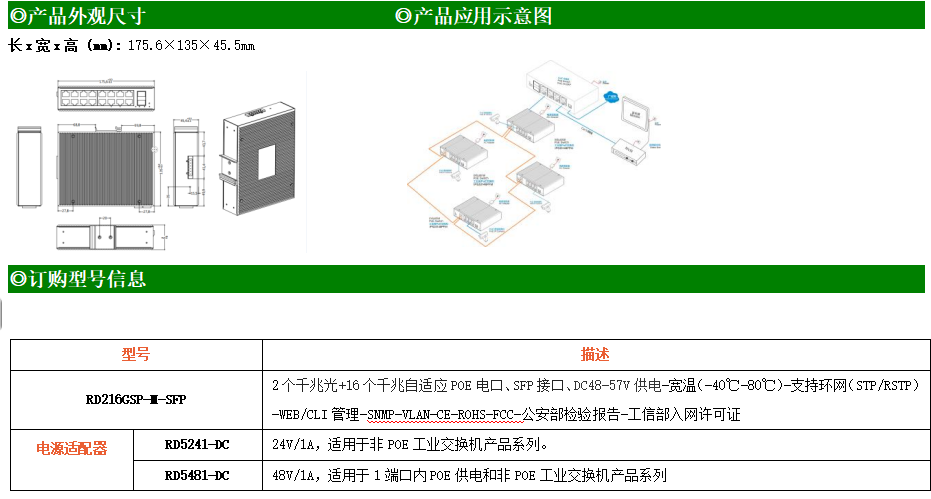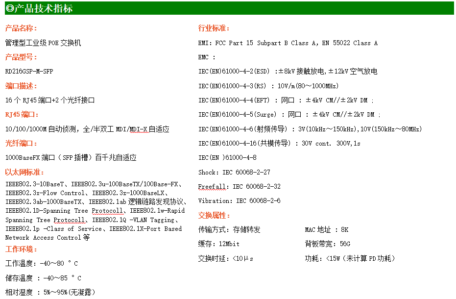 RD216GSP-M是網(wǎng)管型工業(yè)以太網(wǎng)POE交換機(jī),產(chǎn)品符合FCC、CE、RoHS標(biāo)準(zhǔn)。支持2個千兆光口和16個千兆POE電口;支持工業(yè)現(xiàn)場所需的以太網(wǎng)二層協(xié)議,保證通信網(wǎng)絡(luò)的穩(wěn)定性;該系列交換機(jī)采用低功耗、無風(fēng)扇設(shè)計,確保無噪聲干擾,同時支持-40~80℃工作溫度和良好的EMC電磁兼容性能,保證在惡劣的工業(yè)環(huán)境中保持穩(wěn)定的工作,為工廠自動化,智能交通,視頻監(jiān)控等工業(yè)應(yīng)用領(lǐng)域組建快速穩(wěn)定的網(wǎng)絡(luò)終端接入網(wǎng)絡(luò)提供安全可靠的解決方案。