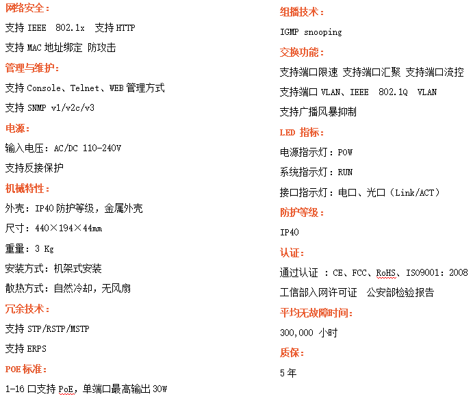 ●安全管理:支持ACL訪問控制列表,支持802.1X