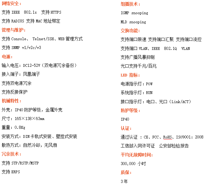 ●支持STP/RSTP/ERPS,SNMPv1/v2/v3,確保網(wǎng)絡(luò)安全