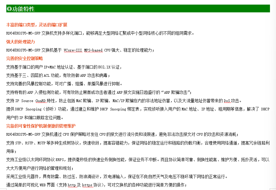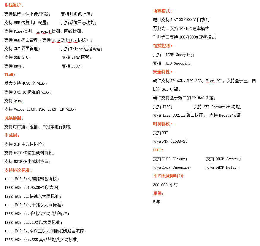 ●網絡冗余:支持STP/RSTP/MSTP,支持ERPS(自愈時間<20ms)