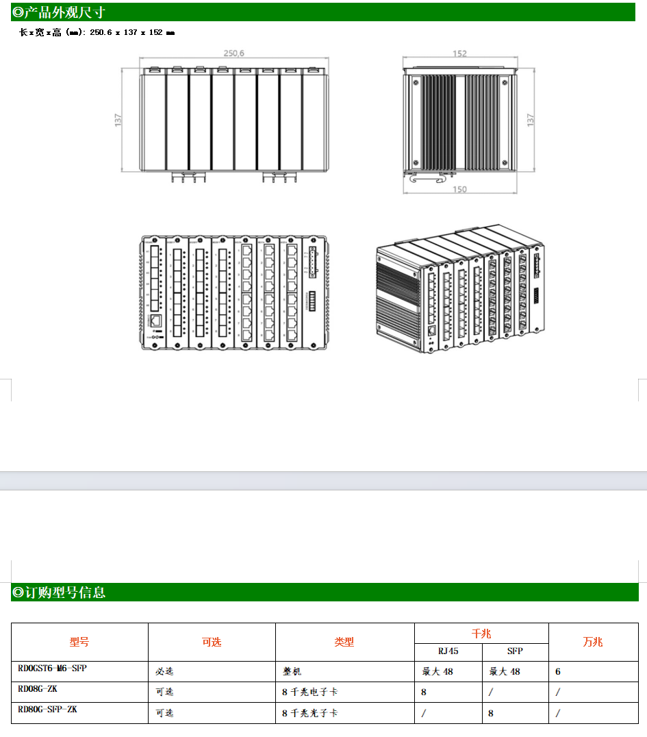 RD648XGST6-M-SFP交換機是我司推出的一款千萬兆混合三層交換機,采用模塊化結構設計,支持機框與板卡多種組合方式,網絡規劃配置更加輕松和靈活。機框提供6個萬兆SFP+光口,板卡支持16千兆光、16千兆電或8千兆光8千兆電可可選。豐富的接口數量、千萬兆混合的帶寬,具有高性能高速率傳輸大量視頻、語音和數據的能力,能滿足大規模工業網絡的應用需求。