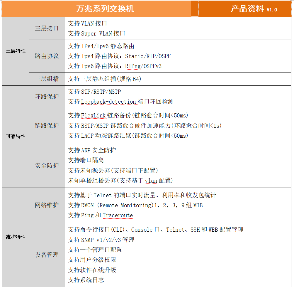 整機設(shè)備提供大容量、高密度、模塊化的二/三層線速轉(zhuǎn)發(fā)性能,豐富的業(yè)務(wù)功能、強大的QoS 保障和完善的安全管理機制,具有電信級的可靠性設(shè)計,可以提供電源部件的冗余,保證網(wǎng)絡(luò)核心的穩(wěn)定和關(guān)鍵業(yè)務(wù)的可靠運行;具有880G的交換容量,支持所有端口線速轉(zhuǎn)發(fā)。