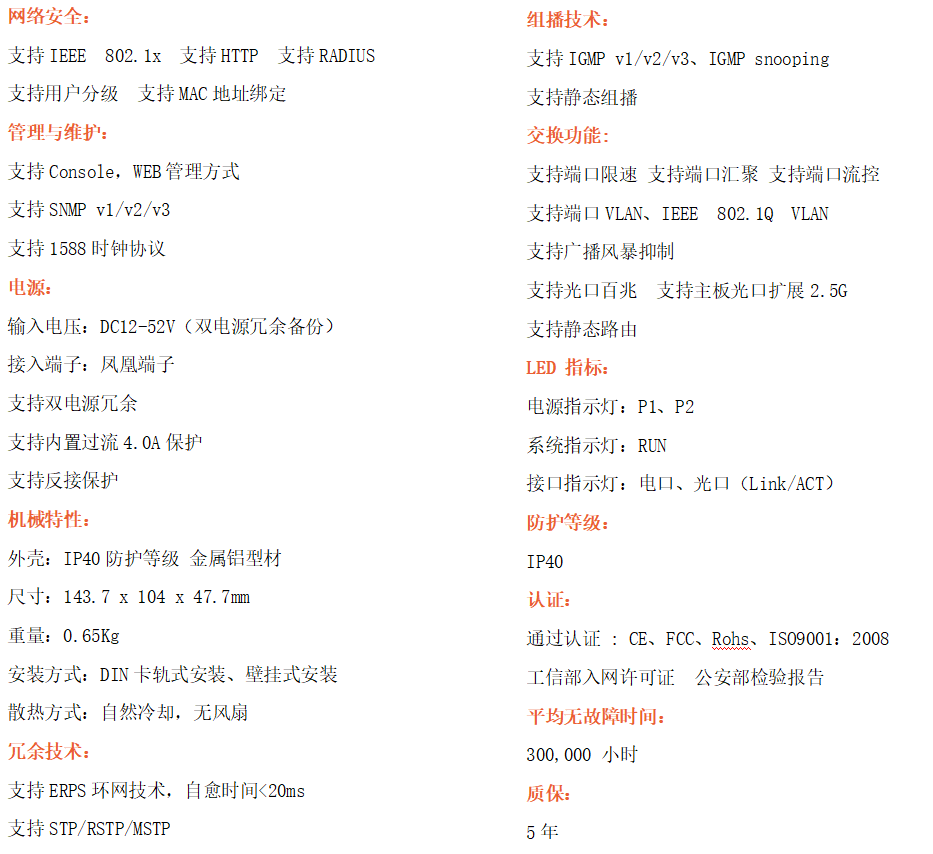 ●支持STP/RSTP/MSTP/ERPS,SNMPv1/v2/v3,確保網絡安全