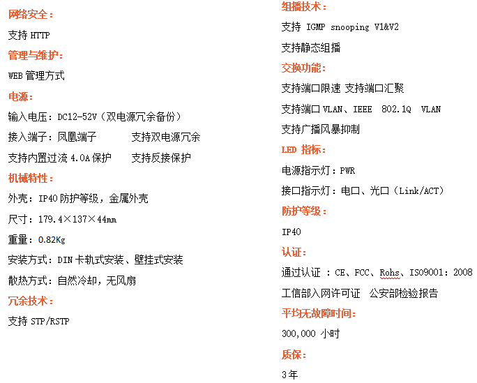 RDL28GFS-SFP是網管型工業以太網交換機,產品符合FCC、CE、ROHS標準。支持2個千兆光口和8個百兆電口,支持一路console口;支持工業現場所需的以太網二層協議,保證通信網絡的穩定性;該系列交換機采用低功耗、無風扇設計,確保無噪聲干擾,同時支持-40~75℃工作溫度和良好的EMC電磁兼容性能,保證在惡劣的工業環境中保持穩定的工作,為工廠自動化,智能交通,視頻監控等工業應用領域組建快速穩定的網絡終端接入網絡提供安全可靠的解決方案。