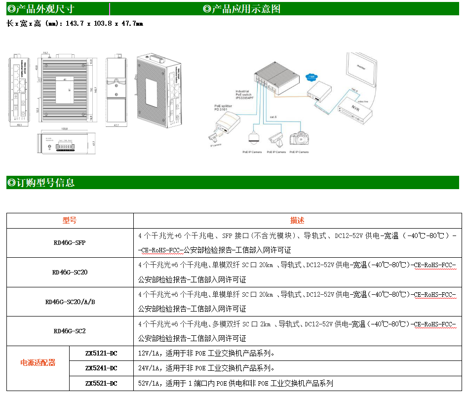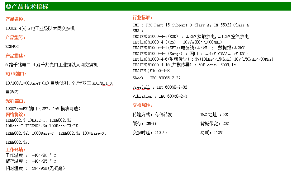 6路千兆電口+4路千兆光口工業(yè)級(jí)以太網(wǎng)交換機(jī),支持6個(gè)10/100/1000Base-T(x)電口和4個(gè)1000Base-X光口。產(chǎn)品符合FCC、CE、ROHS標(biāo)準(zhǔn)。RD46G交換機(jī)具有-40℃~80℃的工作溫度,具有超強(qiáng)的堅(jiān)固度能適應(yīng)各種嚴(yán)苛環(huán)境,也可以非常方便的安置在空間緊湊的控制箱中。導(dǎo)軌的安裝特性、寬溫操作及擁有IP40防護(hù)等級(jí)的外殼及LED指示燈,使RD46G成為一個(gè)即插即用的工業(yè)級(jí)設(shè)備,為用戶的以太網(wǎng)設(shè)備聯(lián)網(wǎng)提供可靠、便捷的解決方案。