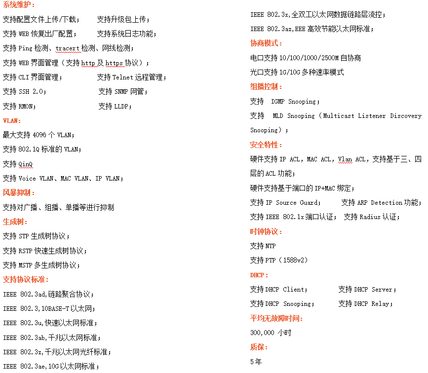 ●網(wǎng)絡(luò)冗余:支持STP/RSTP/MSTP,支持ERPS(自愈時(shí)間<20ms)