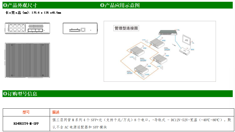 RD48GST4-M-SFP交換機是我司推出的一款萬兆三層交換機,配備4個萬兆SFP+光口和8個10/100/1000M Base-T自適應電口,具備先進的硬件處理能力和最豐富的業(yè)務特性。支持IPv4/IPv6 硬件雙棧及線速轉(zhuǎn)發(fā),使客戶能夠從容應對即將帶來的IPv6 時代其提供高容量的交換能力。RD48GST4-M-SFP交換機具有-40℃~80℃的工作溫度,具有超強的堅固度能適應各種嚴苛環(huán)境。導軌式安裝特性、寬溫操作,使RD48GST4-M-SFP的交換機成為一個即插即用的工業(yè)級設備,為用戶的以太網(wǎng)設備聯(lián)網(wǎng)提供可靠、便捷的解決方案。