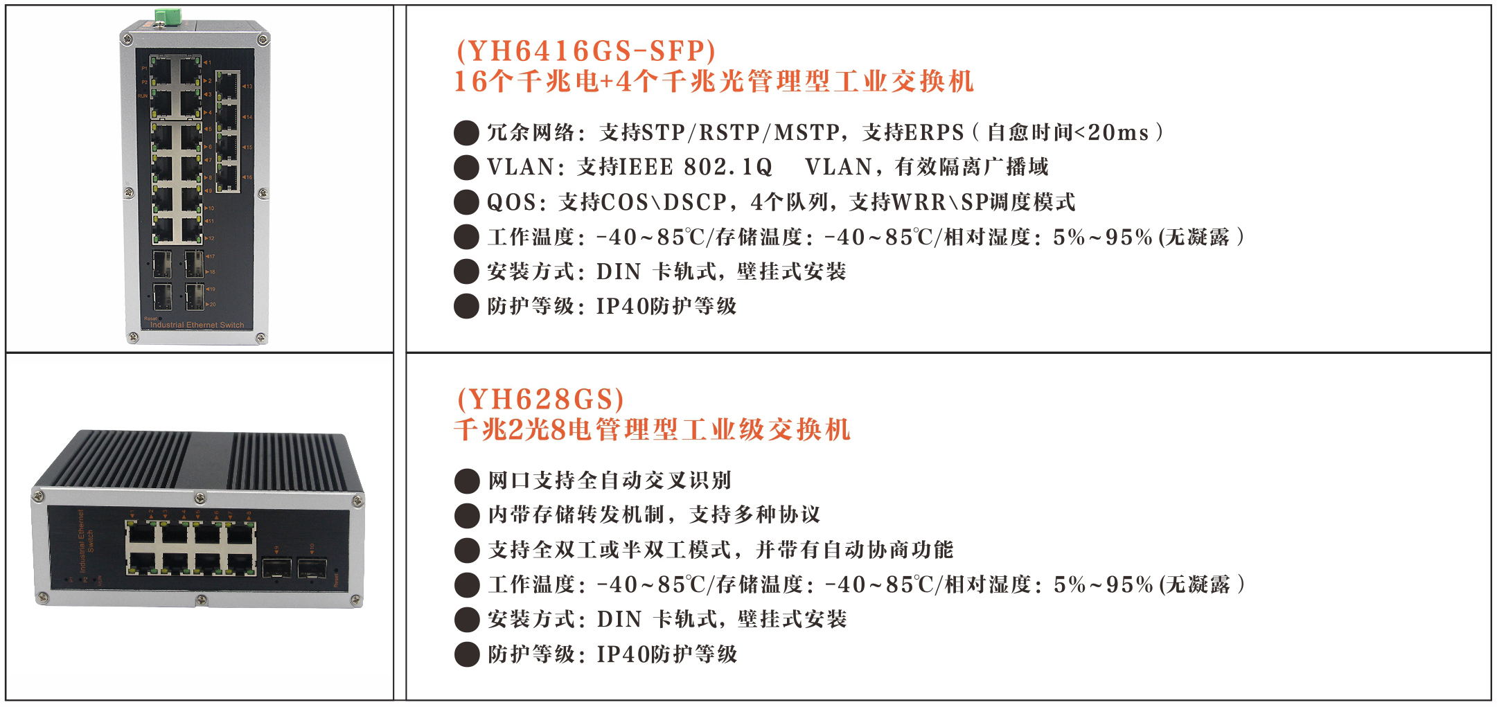 宇航在風力發電站監控系統解決方案中采用YH6416GS-SFP在每個風機的塔筒底部放置工業以太網交換機,環網設備以及核心設備通過1000M光纖互聯核心房安裝倆臺YH628GS組成分別匯聚多個環網數據流量。每個風機由YH628GS工業以太網交換機組成多個千兆環網冗余協議,保障了網絡的無憂切換,提高網絡數據傳輸的高效性。